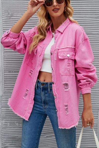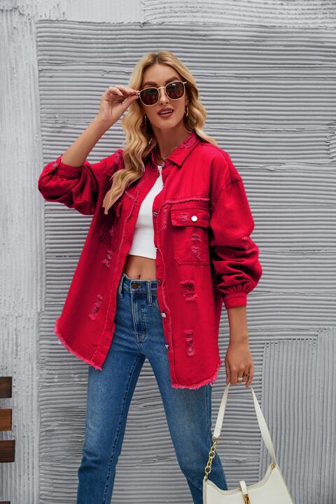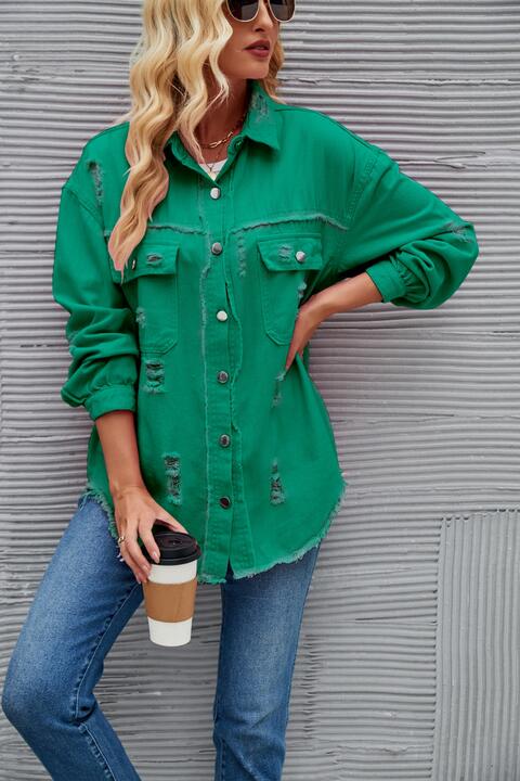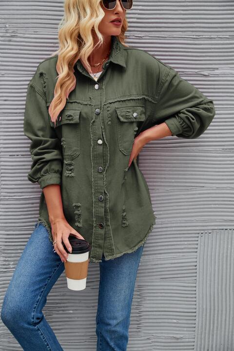 - Features: Distressed, Buttoned, Pocketed, Raw hem