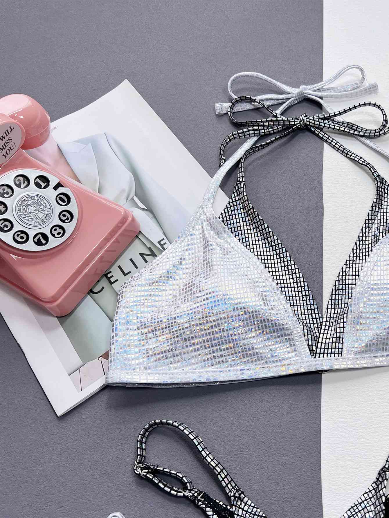 Faux Layered Halter Neck Two-Piece Bikini Set
