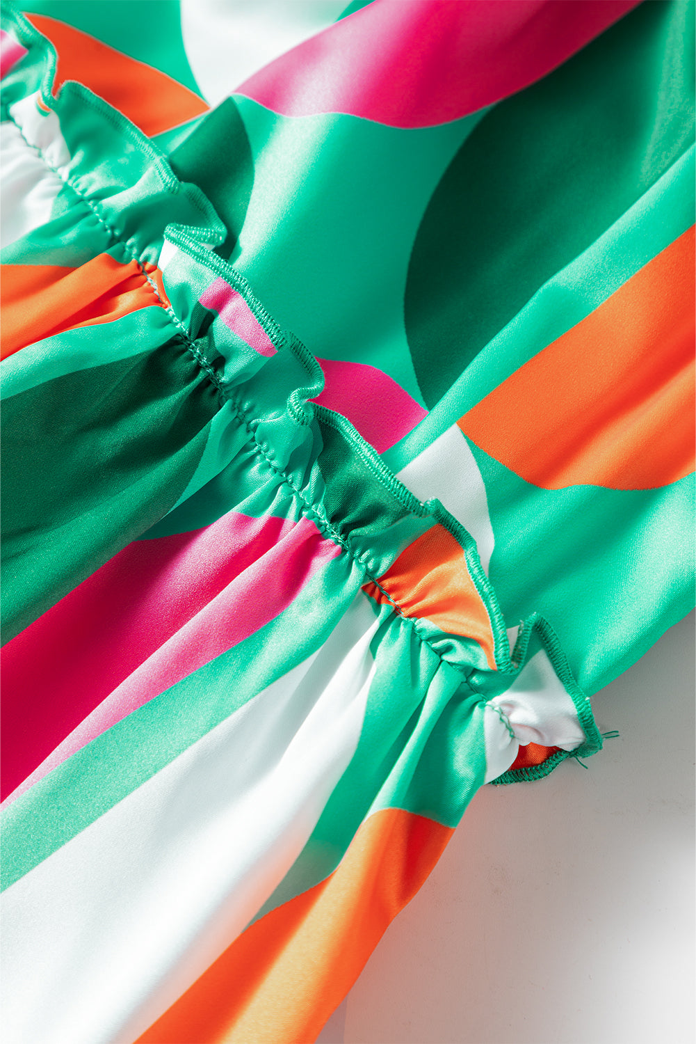 - Subtly puffed short sleeves create a certain femininity, while the ruffle seam details totally up the wow factor