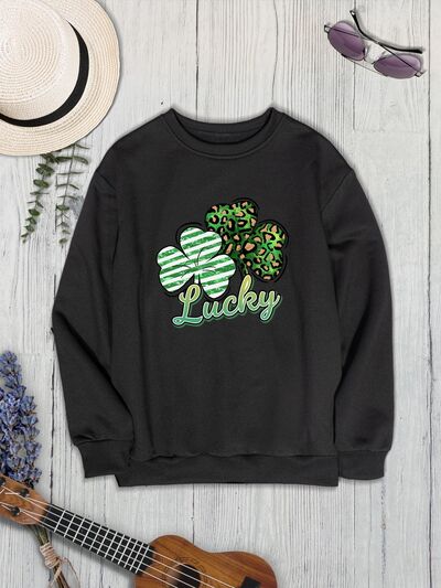 Lucky Clover Round Neck Dropped Shoulder Sweatshirt