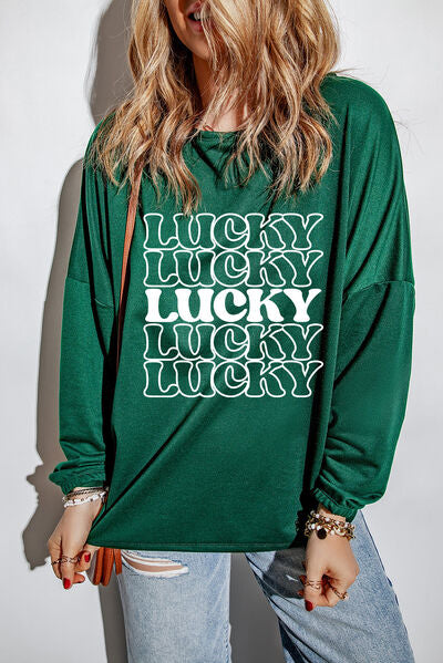 LUCKY Round Neck Dropped Shoulder Sweatshirt