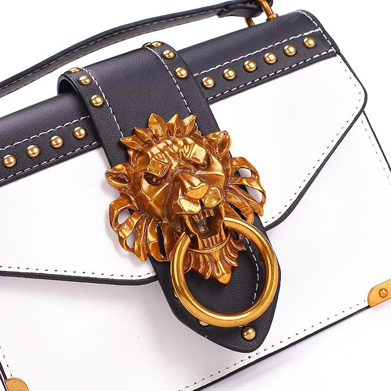 Metal Lion Head Mini Small Square Pack Shoulder Bag