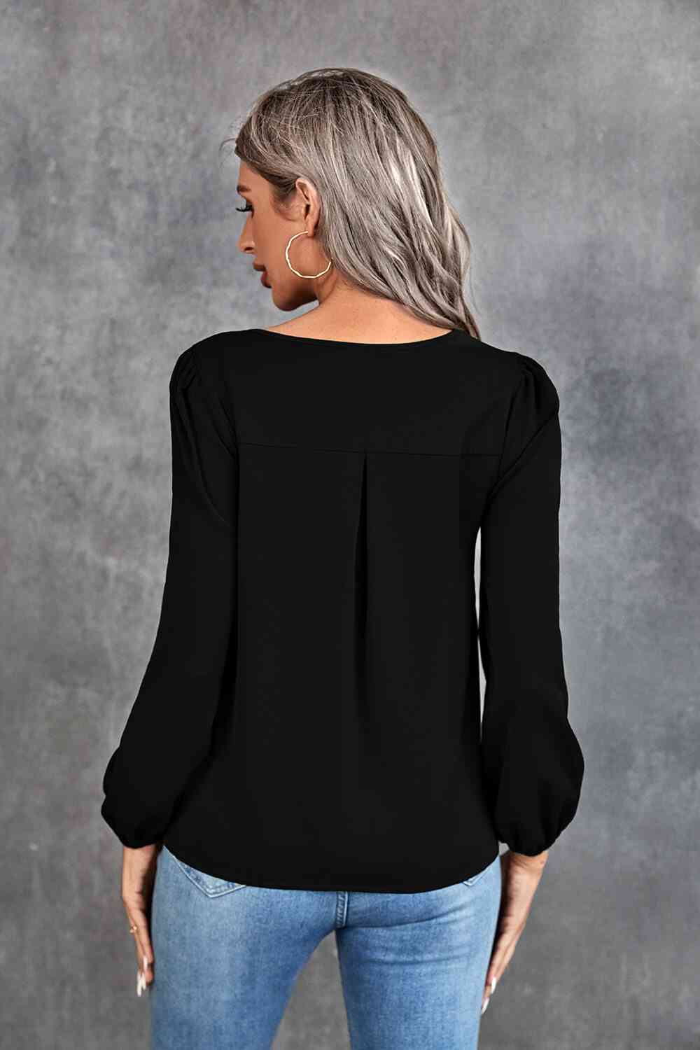 Pleated Detail Cutout Puff Sleeve Blouse
