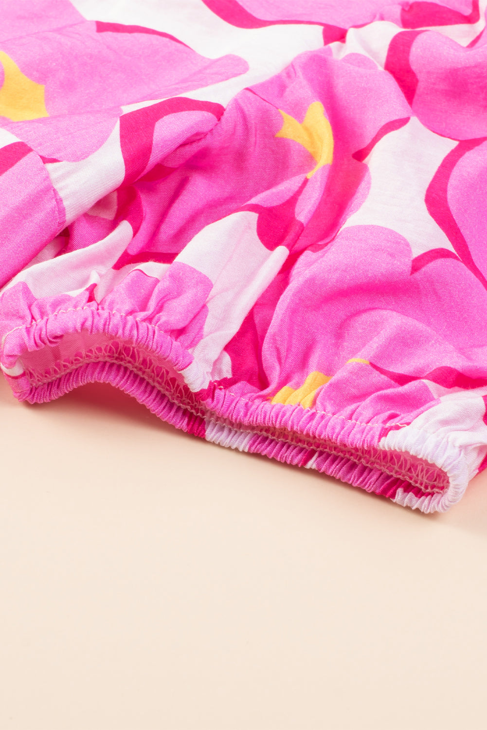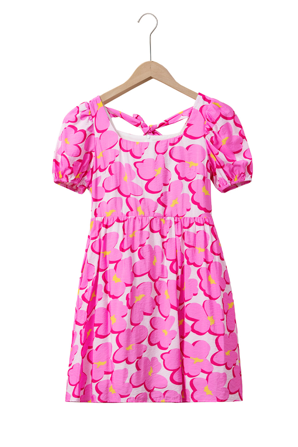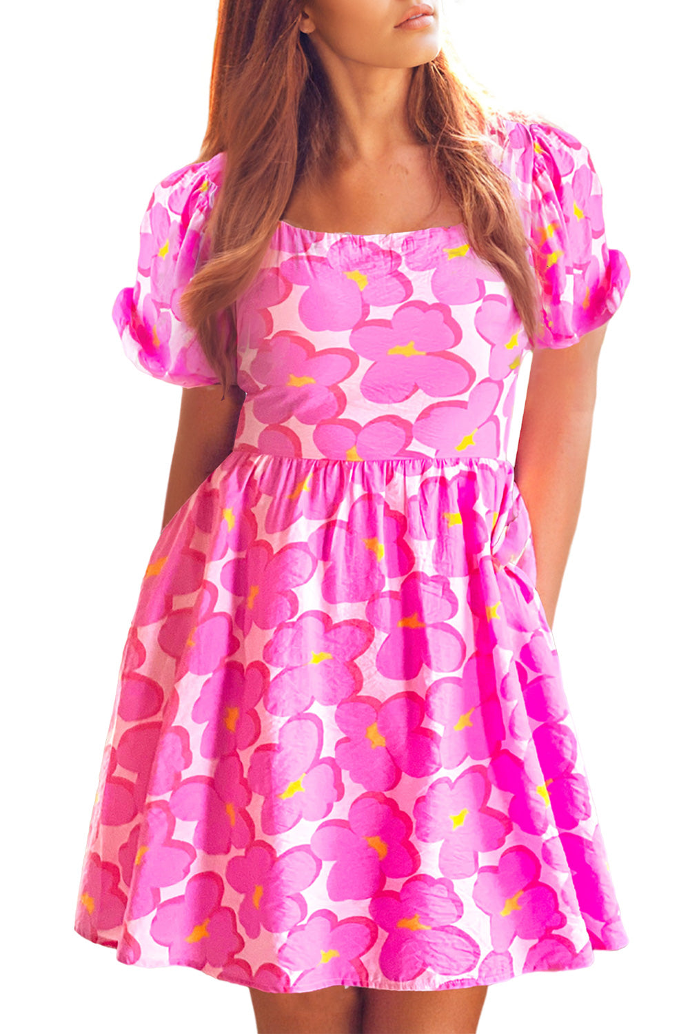 Rose Floral Print Square Neck Empire Waist Flowy Dress
